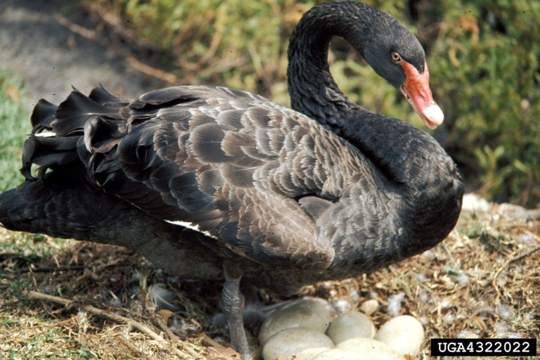 Cygnus atratus is native to Australia. Black swan were introduced to the United States as ornamental birds that have escaped.