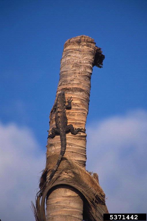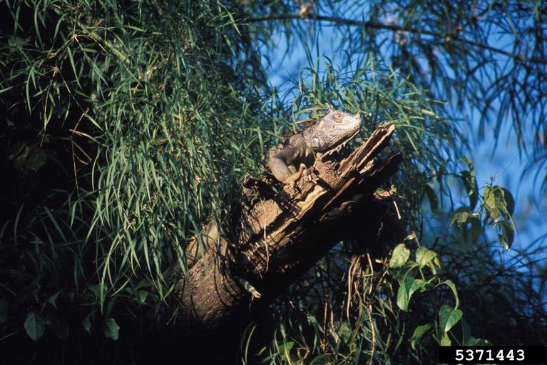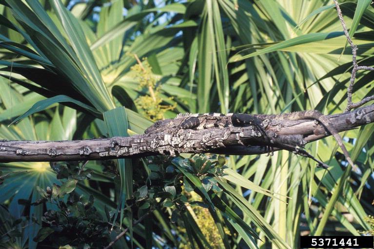 Origin Ctenosaura pectinata is native to Mexico and Central America. Mexican spiny-tailed iguana were likely introduced to the United States as escaped or intentionally released pets. Life Cycle Mexican spiny-tailed iguana are large lizards in size with male bodies up to 18 in. (46 cm) in length with the tail another 18 in. (46 cm). Sexually dimorphic, males possess a well-developed dorsal crest and small dewlaps with females lacking these features. Juveniles are olive-green in color which transform into a greyish color as they age to adults. C. pectinata are extremely territorial and sociable living in large colonies with a strict pecking order. Lizards are typically herbivorous in diet, but they will consume small mammals, insects, and eggs. Distribution C. pectinata populations are found in Florida and Texas. Control Efforts The effects of C. pectinata are unknown. https://animaldiversity.org/accounts/Ctenosaura_similis/ http://reptile-database.reptarium.cz/species?genus=Ctenosaura&species=pectinata
