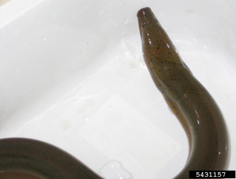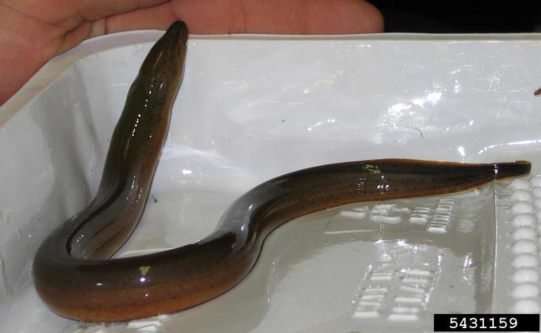 Origin Monopterus albus is native to Asia and potentially northeastern Australia. Asian swamp eel were likely introduced to the United States as intentionally released or escaped individuals from aquariums, fish farms, and the live food market. Life Cycle Easily mistaken for the native American eel (Anguilla rostrata) or another invasive eel, the European eel (Anguilla anguilla), M. albus is identifiable by the absence of a pectoral fin. Adult Asian swamp eels are approximately 39 in. (100 cm) in length, have a snake-like body with no obvious fins, olive-brown in color with a yellow-orange underside, and a v-shaped gill opening. M. albus is nocturnal and burrows during the day and are found in a wide variety of freshwater habitats. Asian swamp eels are voracious predators that eat an array of prey including aquatic invertebrates, turtle eggs, frogs, and shrimp. Distribution M. albus are found in Florida, Georgia, Hawaii, and New Jersey. Control Efforts The effects of M. albus are unknown. A combination of management techniques including trapping, electrical barriers, and removal of vegetation may help limit the spread of M. albus to new areas. Regulations to prohibit the release of M. albus from aquariums and to prohibit deliberately stocking ponds could help slow their spreading to new areas. Prohibiting the use of juveniles as bait or dumping the bait buckets into or near any body of water would also help slow their spread to new areas. https://nas.er.usgs.gov/queries/FactSheet.aspx?SpeciesID=974 http://www.tsusinvasives.org/home/database/monopterus-albus